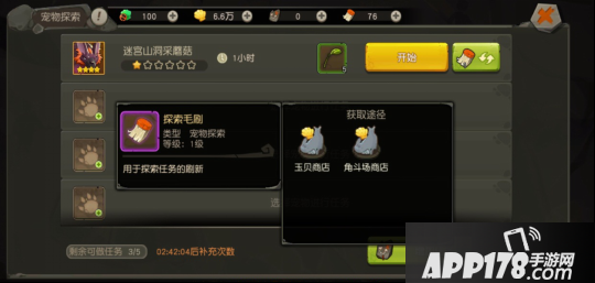 “宠物探索”全天开放,但剩余可做任务次数补充需要花费一定时间。如果觉得次数不够,想要增加任务,可以通过玉贝商店购买探索石板实现,一个探索石板增加一个探索任务。