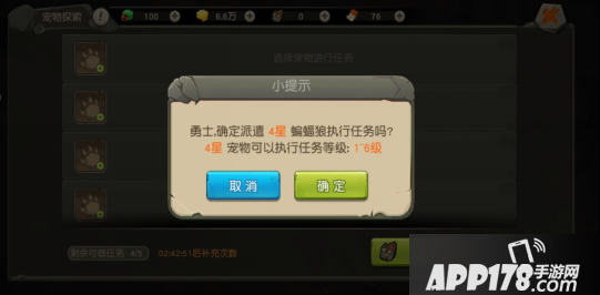 所有的宠物都可以被派出,点击加号选择派出的宠物后,系统会自动分配任务。不同星级的宠物可以分到的任务等级也不同:1星的宠物可以执行的任务等级为1-3级,2星的宠物可以执行的任务等级为1-4级,以此类推。