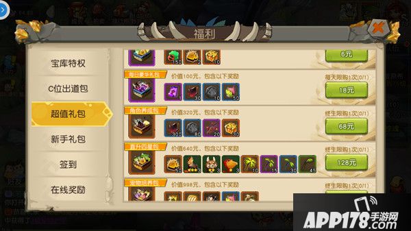 超值礼包分为每日礼包和永久限量礼包两种,每日礼包每天都可以购买,而永久限量礼包每个账号终生只能购买一次。