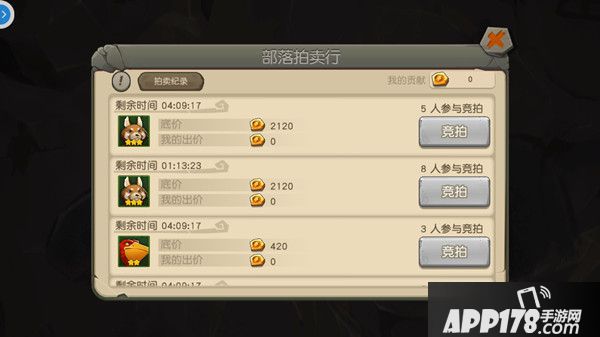 在部落拍卖行中,使用部落贡献可以进行2-3星宠物的拍卖,拍卖采用暗拍的方式进行,每个人只能看到自己的出价以及出价人数,最终出价最高的人赢得竞拍,如果某物品在拍卖时间到后没有任何人出价,则会重新进行拍卖,如果3轮未拍出,则物品流拍。流拍后物品会被系统回收,最终以红包的形式发放给部落全体成员。