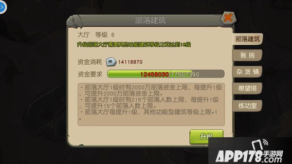 假如你是族长的话,则可以通过在部落升级下面的部落管理选项来对部落中的各个设施进行管理和升级,每一项均需要消耗大量的部落资金,通过族人们完成部落任务,可以获得部落资金,所以要想部落强大起来,每天完成部落任务,那是必不可少的啊,俗话说的好,众人拾柴火焰高。