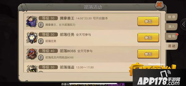 【部落任务】【部落BOSS】【部落强盗】【世界BOSS挑战】等一系列部落活动,都会奖励大量的族贡。其中部落任务和部落BOSS这种单人且全天开启的任务,性价比十分高,建议每天不要落下,跑一圈任务下来,升级部落技能的族贡就完全够了。