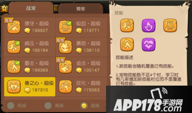 假设你现在要给一只5技能变异猫打技能,依次打上:獠牙、吸血、威压和暴怒,重击是猫自带的,以上技能全为超级,后续不多做赘述。
