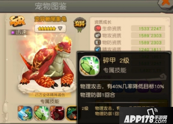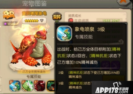 2.龟:加法抗40%,概率减防15%,简直是物理队的吉祥物,推荐体耐速加点,速度保持在全队一速方便减防。推荐技能:顽强(重生)、强壮、光明、加双防或概率减被击伤害的技能(忘了名字了)。