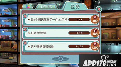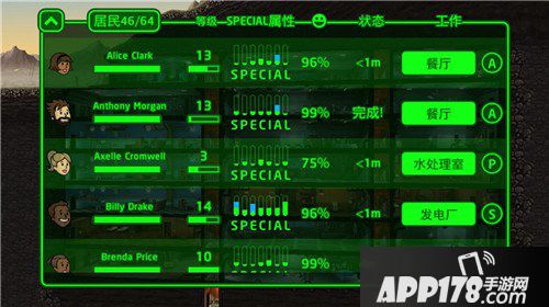 5、派遣居民去储藏室、训练室,或者去废土探险。去废土探险会获得武器和装备。探险的居民,要选择各项属性综合较高的,居民属性越高,在废土存活的时间越久。记得装备衣服和武器,带一些治愈剂和消辐宁。
