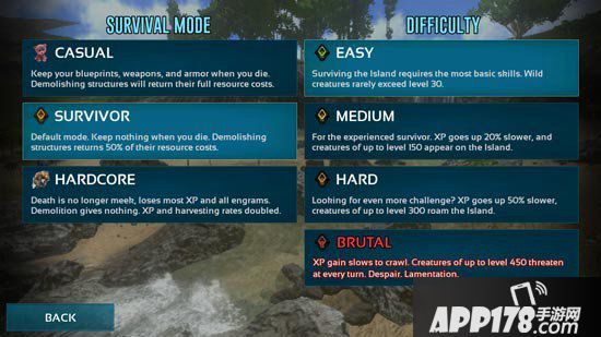 1、单机模式新增3个模式:休闲、幸存、中坚份子模式,分别对应不同的功能,休闲模式下死亡不会掉落装备蓝图、辛存模式延续之前的游戏模式、中坚份子模式死亡会重置经验值和技能点,但是升级经验和资源采集速度大幅度的上升,另外3个模式下又划分简单、中等、困难、残酷模式,还等什么,快去试试吧!