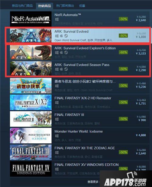 《方舟:创世》第一部的推出的同时,《方舟:生存进化》本体提供了周末免费试玩、历史新低2折的促销活动(仅售人民币20元)。这些利好加上《方舟:创世》出色的游戏内容,成为方舟刷新历史最高在线人数的推手。在S team全球热销商品榜单上,游戏本体及数个DLC进入第二至第四名。