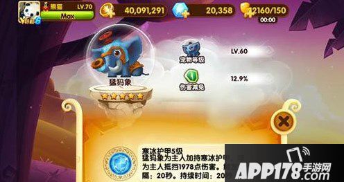 寒冰护甲:猛犸象为主人加持寒冰护甲,可以为主人抵挡1978点伤害。触发间隔:20秒 持续时间:20秒