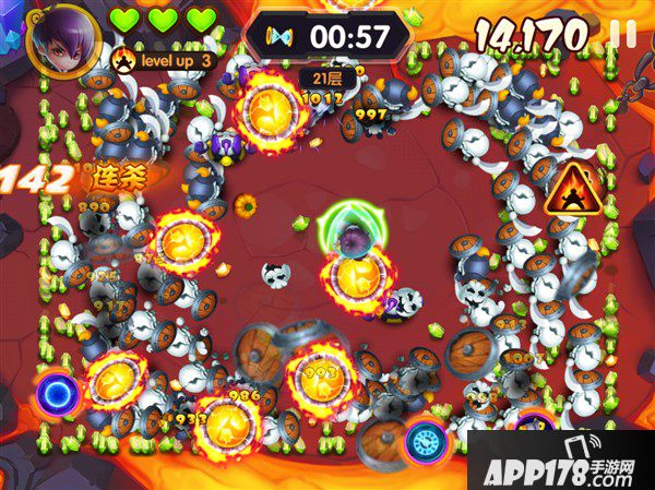 在2分钟内,一旦3滴血用完或者2分钟结束则本次战斗结束,系统会计算已完成的地狱层数,下次挑战会从未完成的层数开始。如果你在规定时间内提前over了,还有一次复活的机会哦! 好好珍惜!