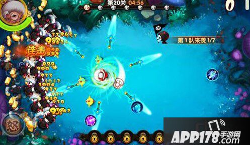 技能是击杀怪物的最佳手段,可以在游戏里利用各种随机出现的技能击杀怪物。第二章第二十关属于中等难度关卡,除了基本技能,即冰冻怪物的北极冰封,全屏弹射伤害的弹球飞鞋,对怪物造成范围性伤害的地狱火炮之外,剑刃风暴等范围技能也是通关利器。合理的利用这些技能,对死神造成大量伤害,是取胜的关键。该关卡没有BOSS,但是会出现大批量的飞行死神小怪和大嘴怪,飞行死神血量较低,利用技能可以有效杀伤,要注意大嘴怪吞噬技能球,及时利用大威力技能清除大嘴怪是取胜的关键。