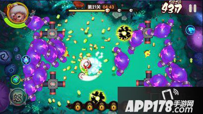技能是击杀怪物的最佳手段,可以在游戏里利用各种随机出现的技能击杀怪物。第二章第二十一关属于高难度关卡,冰冻怪物的北极冰封,全屏弹射伤害的弹球飞鞋,对怪物造成范围性伤害的地狱火炮,合理利用这些级别技能对怪物造成伤害。这关的元素怪如果大批量出现产生的元素球会对玩家产生高额伤害,一旦碰上直接损失三分之一血量,安装战争机甲类的技能,利用无敌效果有效的躲避元素球的伤害是过关的关键。