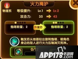 攻击力:lv10攻击108触发后从地面钻出旋转炮塔,朝角色身边的敌人进行火力压制消灭死神。