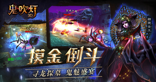 精绝死域人点烛,昆仑神宫鬼吹灯!由新动集团独家代理,65游戏、畅元国讯联合发行的正 版《鬼吹灯3D》手游,今日全平台震撼上线!十年盗墓经典再现,亿万灯丝翘首以盼,原著正版授权改编,八大场景惊悚重现,一场零距离摸金狂潮即将席卷!现 在就抓起摸金符,去苹果、安卓应用商店下载《鬼吹灯3D》开启惊悚虐心的冒险之旅吧!