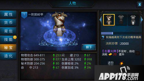 秘宝不但能增加玩家属性,升级之后,更有酷炫的脚底光环效果。