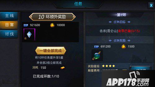 在鬼吹灯3D中,除了为大家提供各种丰富的活动外,还为大家提供了简单轻松但奖励丰富的日常任务,日常任务包括环任务和讨伐任务,环任务可以获得大奖经验和钞票奖励,讨伐任务大量金块和绑定金块奖励。