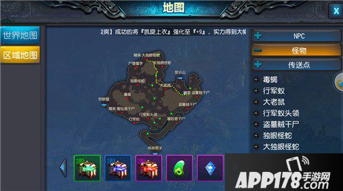值得注意的是,游戏的每张地图将会有一个野外BOSS,每个野外BOSS刷新时间不同,击杀世界BOSS将获得史诗级级装备,珍稀道具,钞票奖励。世界BOSS刷新之后,会有系统公告通知全服玩家,同时玩家可以“活动”功能,找到世界BOSS标签,查看各个世界BOSS是否刷新。只要玩家达到VIP4即可点击传送,对于新手玩家来说,可以点击世界地图查看boss刷新的位置,然后点击地图坐标就能自动寻路。推荐新手玩家留意金国将军的刷新时间,战力一般就能击杀,并能获取紫色1阶超凡装备以及合成石、强化石等道具,早日脱离萌新不是梦!