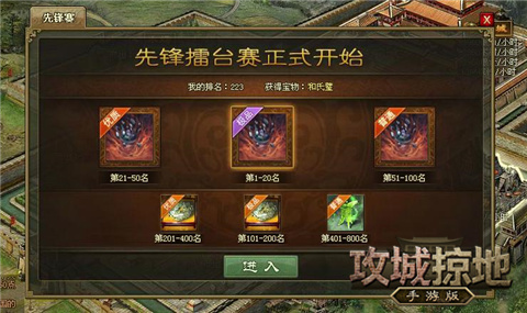 《攻城掠地》手游版的先锋擂台赛也是非常考验玩家实力的