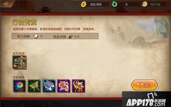 行侠有赏:在规定的时间内,打出尽可能多的总伤害,就能专区高额积分,获得大量铜板和历练币的奖励!当倒计时归零,历练结束。