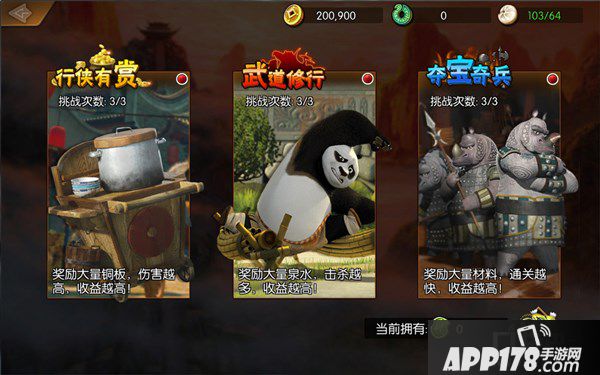 在《功夫熊猫序篇》公测版本中新增了全新的历练副本的游戏模式,集合了各种有趣的玩法,在挑战过程中玩家不仅可以体验到不一样的乐趣,还可以获得大量铜板、泉水、神奇材料等资源奖励。