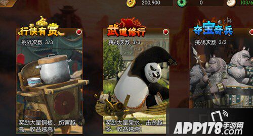 历练副本是《功夫熊猫序篇》为了公测版本新增的游戏模式,集成了多种趣味玩法,在挑战过程中玩家可以体验到与征程和比武不同的乐趣,同时可以获取大量资源奖励,包含铜板、泉水、神器材料等等。