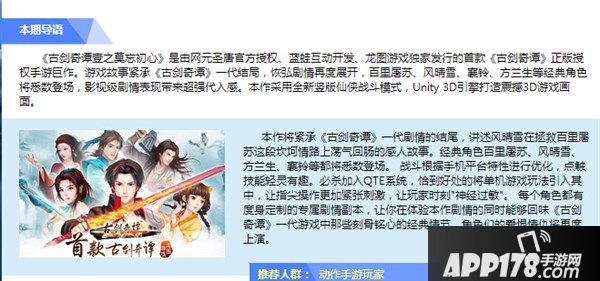 古剑官方正版授权的首款《古剑奇谭》手游《古剑奇谭壹莫忘初心》终于开测,作为一款由当下最强大的Unity 3D引擎打造的手游,古剑除了有震撼的游戏画面外,细腻的剧情也是本作的惊艳之处,本次小编带来了古剑奇谭壹莫忘初心的礼包激活码领取攻略,玩家们快来APP178手游领取礼包吧。