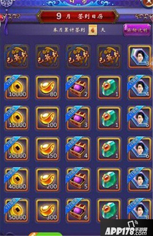 2.签到/七日奖励:游戏常见的用户留存手法,每日登录游戏就可以些许的元宝的奖励。