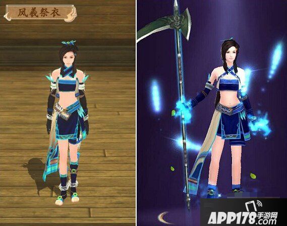 晴雪的凤羲祭衣,幽都风格的时装。蓝色很适合温柔的晴雪啊。