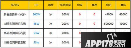 乖离性百万亚瑟王新春舞狮冰牙即将在下期的活动更新中全面上线了,相信此次的新boss也是玩家们最为头疼的一个。今天小编我就为大家带来乖离性百万亚瑟王新春舞狮冰牙的数据先行版预告。