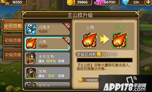 刚开始的技能都是一星的,随着技能等级的提升,杀伤力和攻击范围也会有所提升。(当然每提升一次技能点是需要大量的金币的,各位要想后期更顺利的通关,尽快提升技能等级是必不可少的)