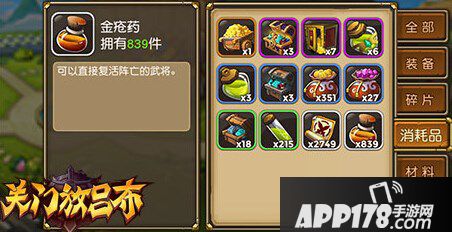 不过想要快速治疗则需要多多积攒战胜获得的金疮药,这个可以从主公的背包内查看数量。