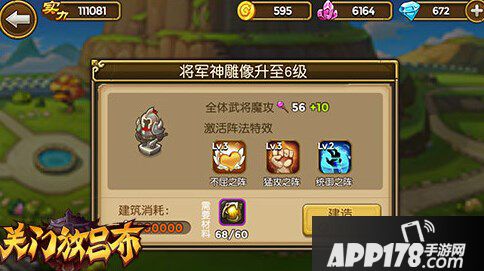建筑投建和升级,虽说是休闲养成的玩法,但是有大部分的建筑功能会与对战效应挂钩,所以提升建筑实力很有必要。譬如城防所可以布置我军的防御固定战术,抵御其他玩家来袭,等级越高生命力越强,效果也就越好;羽林军、近卫营和防御塔的等级提升,可以召唤更多小兵作战,也能为对战提供有利战机;而战神雕像亦可以提升全体武将的作战能力,相当实用。