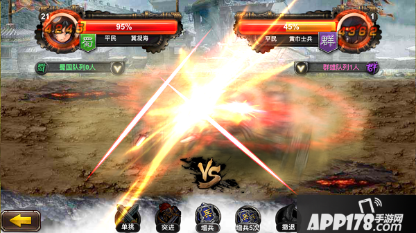 突破:当己方数量足够多时,可以突破敌军防线、直接进攻下一作城池。突破后玩家可攻打次城池相邻的敌方任意城池。