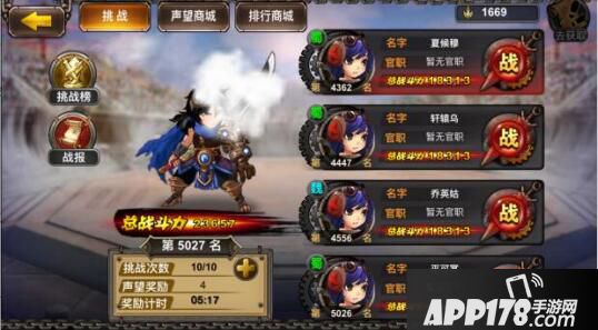 以购买几次额外擂台挑战次 数,来提升自己的排名,赢得更多的钻石和声望。第一天尽量进攻系统安排四个目标中名次最高的对手,毕竟每天免费挑战次数只有10次。