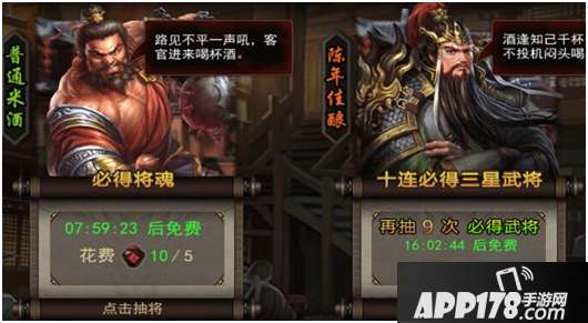 用普通米酒必得将魂,将魂可用来提升武将。就算运气不好没有抽到武将,获取到将魂也是非常不错的~