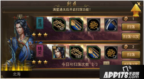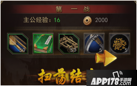 扫荡后会迅速获取经验,铜钱,物资和武将进阶材料,是支撑军队开支的不二选择。