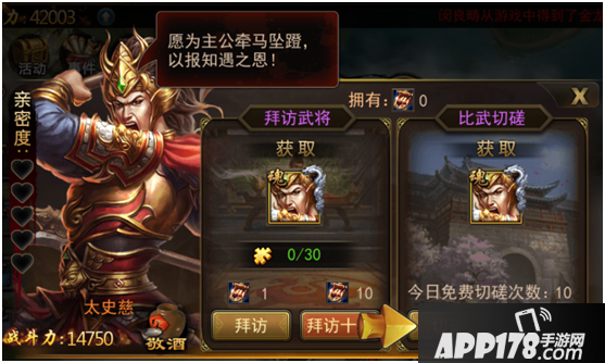 玩家Lv.24后开放【切磋】系统,这是获取武将的玩法之一,战斗胜利后即可获得该城池守将将魂。