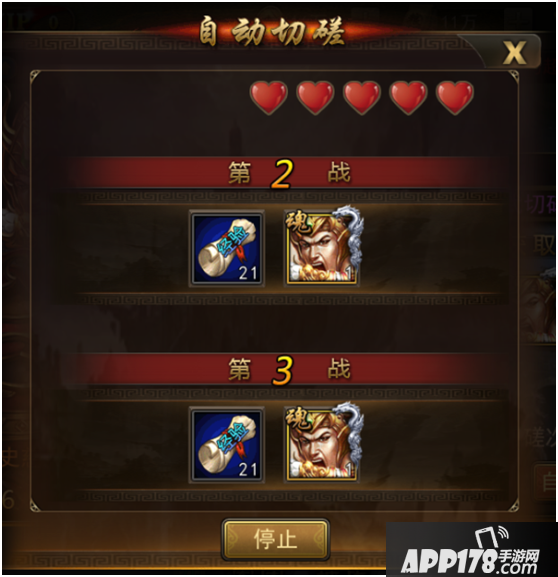 自动切磋:点击后,系统默认使用上次切磋的队伍阵容,自动进行连续切磋,此时消耗、奖励、亲密度奖励和守将战力提升与手动切磋完全一样,只是不展示战斗过程,只展示切磋结果。