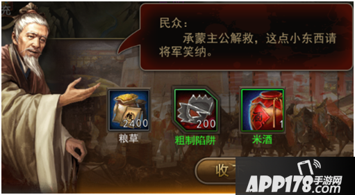 3.收复城池后,当地的民众会主动为主公献上粮草,还请笑纳~
