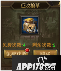 2.每日都可在府库征收粮草。这是获取粮草最经济实惠的来源,大家每天可不要忘了哦。当然,也可以直接用元宝购买。