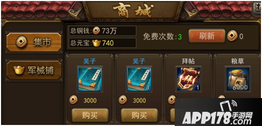 1.可以在商城中的集市用铜钱购买。购买一次之后只要刷新便可再度购买。