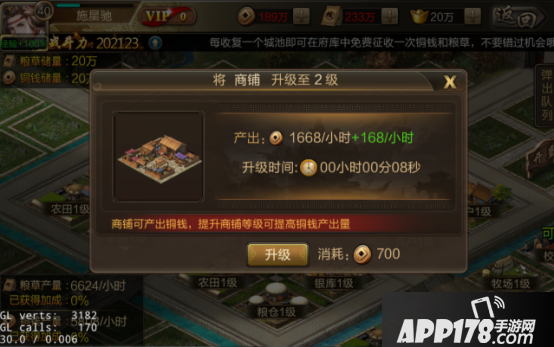 11级之后玩家将免费获得一块封地,在封地中可以建造各类建筑,其中民居与商铺可以自动产出铜钱。升级民居与商铺之后,铜钱产出量会变得更多,投资才会有回报,所以千万不要吝啬升级建筑的那一点点钱哦!