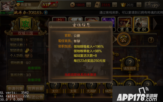 军团占领都城之后即可激活对应体系的官职,担任官员虽不能直接获取铜钱,但官员会提升大量封地铜钱产出量。
