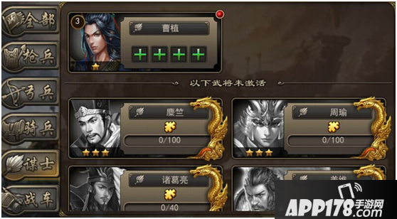 打开武将面板,点击左侧的某个兵种选项,如【谋士】,右侧便会显示具备该兵种的所有武将啦。