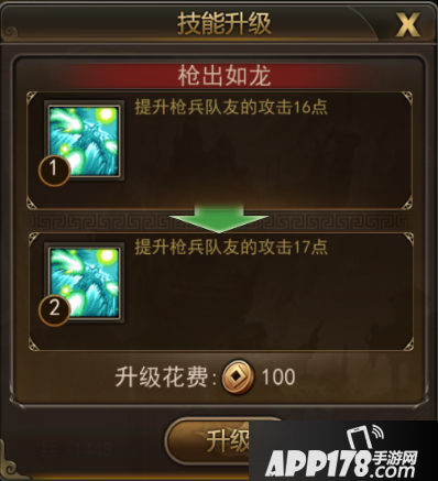 武将进阶之后,可以开启新的技能。升级之后可提升该技能的伤害与增益效果。