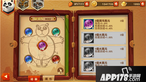 市面上很多RPG游戏都有战斗力这么一说,这有一个好处就是玩家能非常清晰而且具体的知道自己的综合实力是多少。关于这点,《功夫熊猫3》也同样不例外。可以这么说,战斗力是一条线,贯穿了《功夫熊猫3》整个游戏。游戏中每一个系统、玩法都与之息息相关。