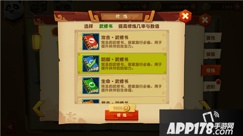 3、武修书价格比较贵,前期不需要刻意花元宝购买,还有伙伴修炼也无需去获取,因为伙伴修炼有更好的东西去获取——伙伴进阶石。
