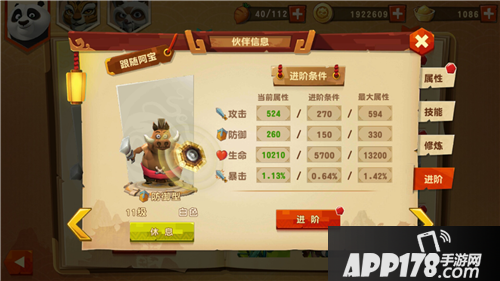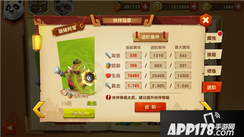 3、伙伴进阶:伙伴进阶不仅仅是开启新的伙伴技能,更重要的是制约着伙伴的属性培养!
