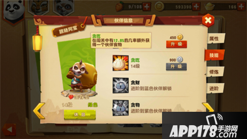 2、【贪吃】闯关中有几率额外获得一个伙伴的食物;