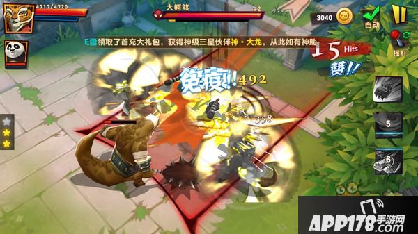 然而就手游而言玩法操作才是重中之重,特别是有了《功夫熊猫续篇》和《功夫熊猫》在前,若全无看点怕是难免非议。此番摒弃摇杆,选用触屏式操作,角色会自动攻击面前的敌人,玩家要做的便是适时的控制走位并且释放技能。对于强化了角色动作、技能特效的《功夫熊猫3》而言,无疑让玩家更有机会来欣赏战斗。
