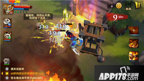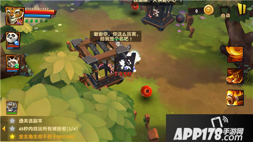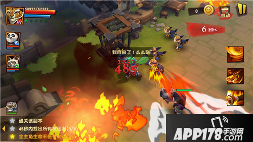 今天给大家分享的是《功夫熊猫3》帮会任务里面的燃烧的和平谷,这个副本技巧为主,操作为辅。主要是第二个条件——45秒内抢救四个小萌兔。剩下的就好解决了。